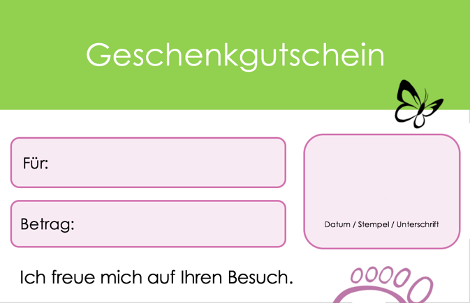 Geschenkgutschein "Schöni-gsundi-Fiäss" damit sie sich gleich wieder jünger, frischer und entspannter fühlen.